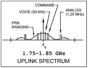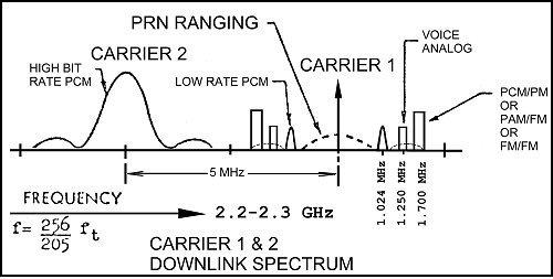| Carrier 1 | PRN ranging, 1.024 MHz (PSK, PI/2), 1.2500 MHz voice, 1.700(PSK, FM/FM) PCM/PM. PAM/FM or FM/FM |